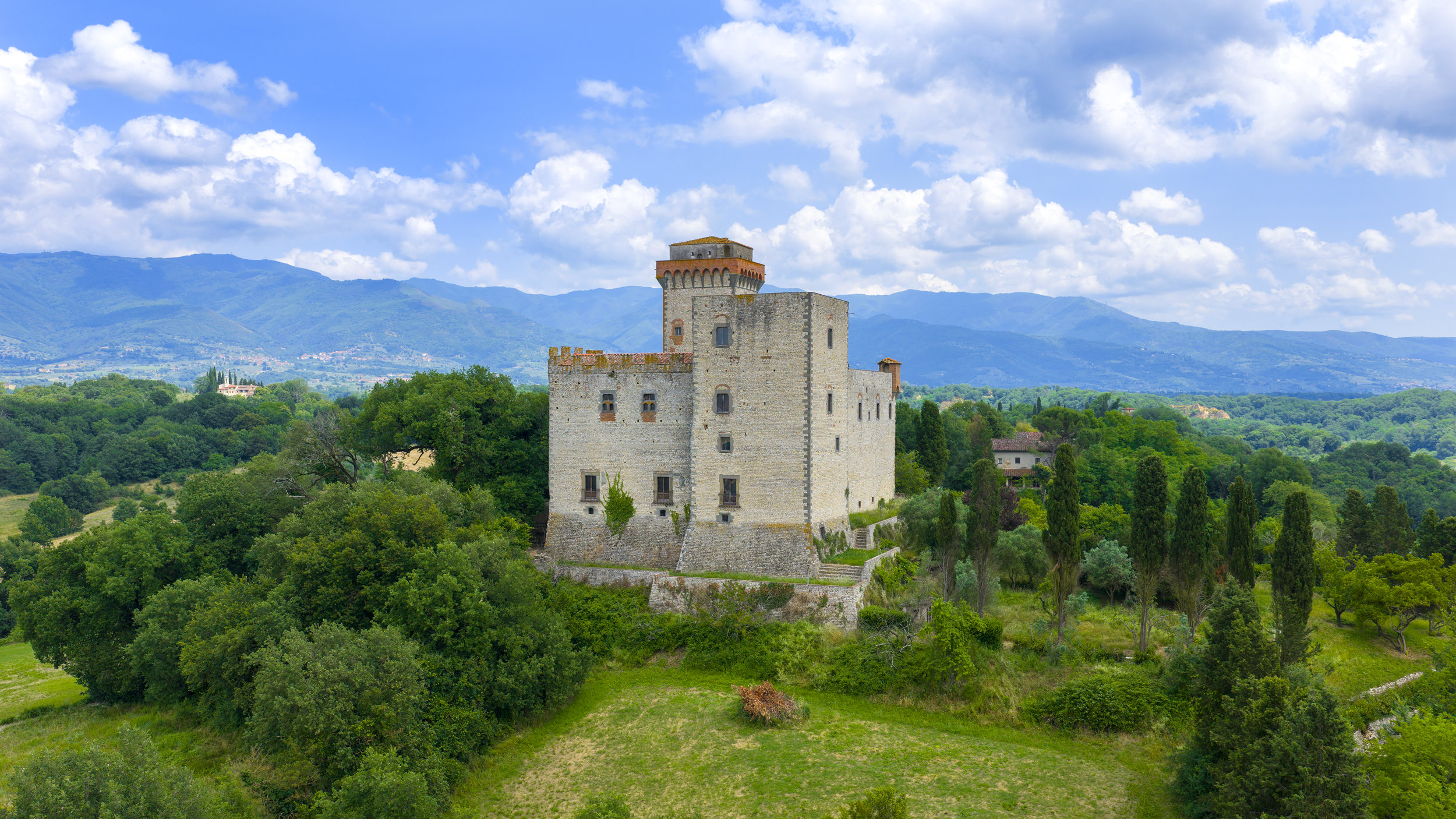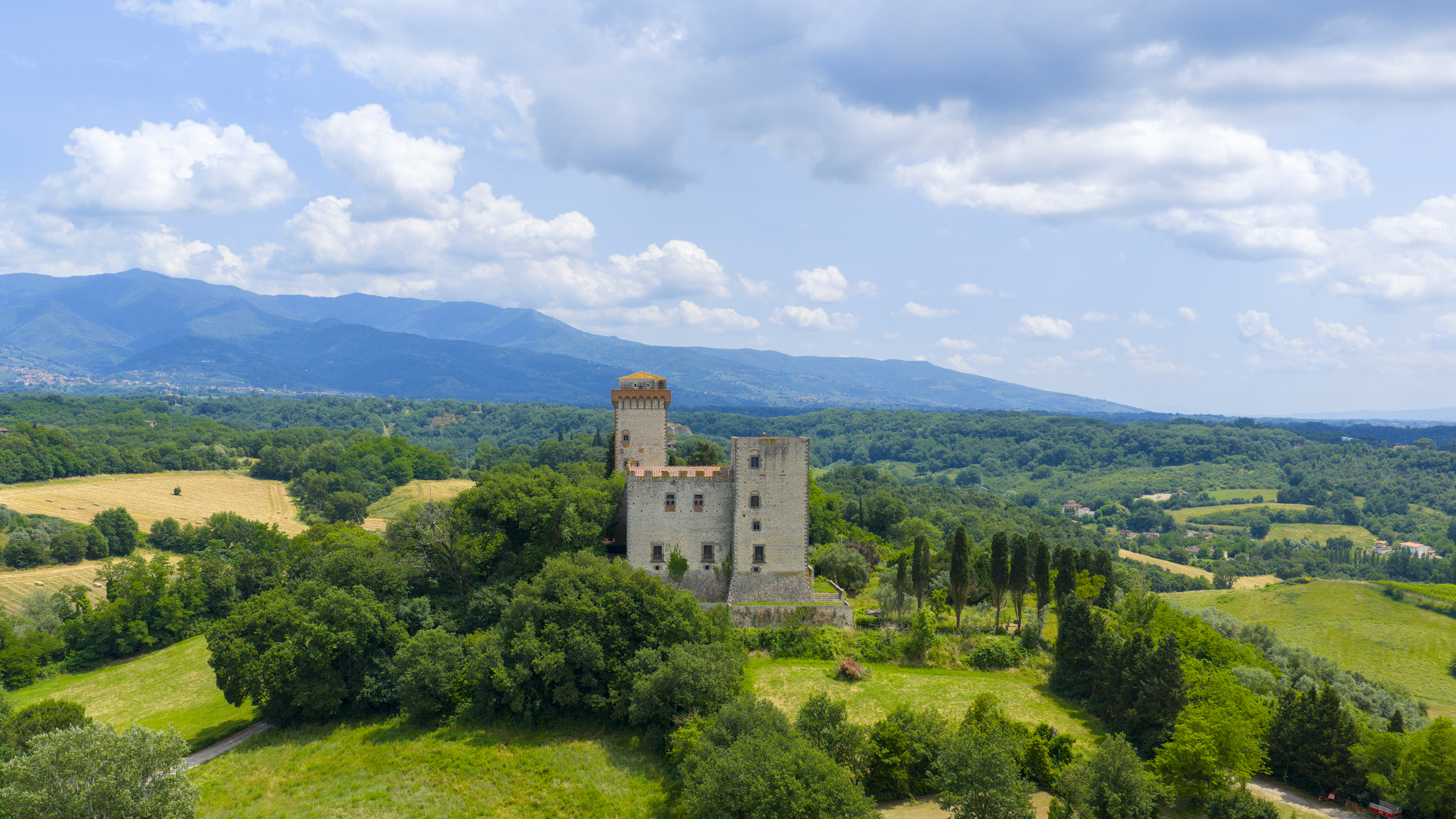 La Torre del Castellano si erge solitaria su un’altura nei pressi di Reggello, dominando con la sua mole severa e antica la vallata dell’Arno, a breve distanza da quella che fu la vitale arteria medievale del Casentino. La sua posizione strategica, a controllo di vie di transito e comunicazione, ne ha determinato l’importanza nel corso dei secoli e il suo stesso nome tradisce l’origine militare e signorile dell’edificio: “Castellano” indica infatti la figura preposta alla custodia di un castello, a testimonianza di un ruolo centrale nella difesa e nell’amministrazione del territorio.